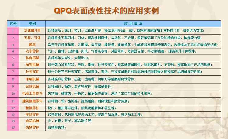 经过QPQ表面处理后产品具有以下的特点: